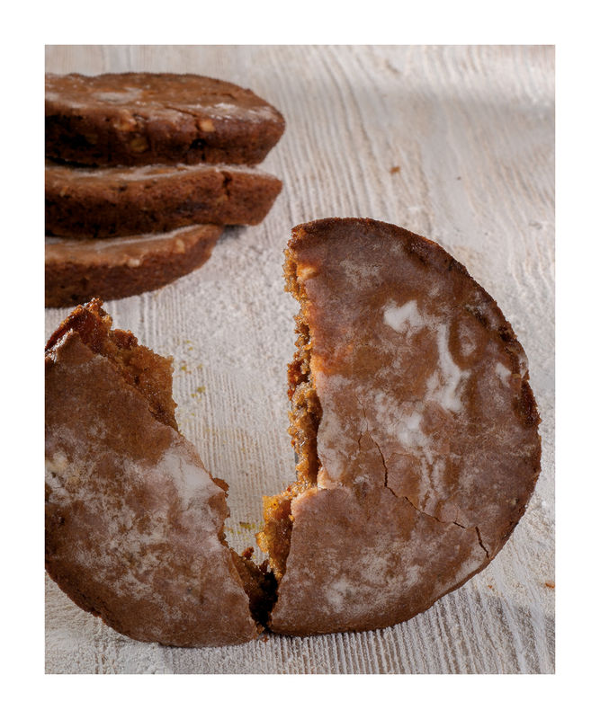 Ingrédients: Miel, farine, amandes, sucre inverti, lait, beurre, cacao, sel, épices, noix, raisins, rhum, édulcorant: sorbitol, bicarbonate de sodium et d'amonium